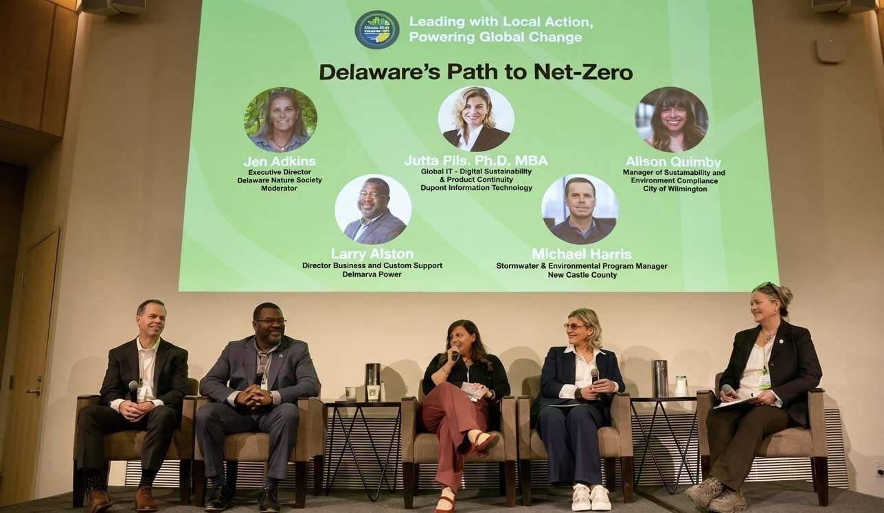 Panelists will discuss how data, infrastructure investment, regulatory alignment, and community-based programs are shaping the state’s emissions reduction pathway. From corporate digital sustainability strategies to municipal environmental compliance and countywide climate initiatives, this conversation will highlight the practical steps and partnerships required to achieve a resilient, low-carbon future for Delaware.